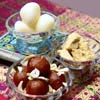 印度的新年美食,基本上比平時更多、更豐盛,有的地方習慣以素食祭拜,有的地區則會特別以雞、羊料理以犒賞自己一年的辛勞。而最重要的,也是每逢重要慶典都不可或缺的,便是「甜點」。不同於西方甜點以麵粉與奶油為主原料,印度甜點多以小麥粉、鮮奶或奶粉為主要製作原料,並且加入大量砂糖。吃不習慣的人也許會覺得太甜,但其中濃郁的奶香味,有時有讓人一吃上癮、愛不釋手!