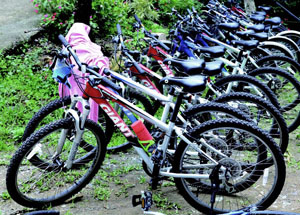 體會騎乘樂趣 腳踏車這項運動,不只能讓你感受涼風吹拂臉龐的愉悅心情,行車的過程中,也能讓你看見平時不易觀察的世界。像是白鷺鷥在田野間覓食、晨曦中的露水、農人在田野間工作點滴等,這一幕幕大千世界的美妙情景,當你靜下心來細心觀察體會,都是感動。 提高騎車安全 所謂「功欲善其事,必先利其器。」民眾選擇適合的腳踏車,才能提高騎車的安全與樂趣。購買腳踏車時,應先確定使用腳踏車的目的,究竟是當成一般交通工具,還是休閒時騎著上山下海、登山越嶺,亦或是做為競速使用,確認之後再做適當的選擇。 初入門者可以依照自己的身高來選車,買了不適合的腳踏車,極容易在轉彎、迴轉時,因手臂過短或過長而影響腳踏車的操控,輕者發生摔車,嚴重者更可能發生危險。當然,座椅的高低亦應方便調整,避免腰部的髖骨、腰椎受傷。兩腳平行與肩同寬10 公分測量地面至褲襠長度,乘以0.885 公分長度,拿來調整腳踏板與車身銜接處至座椅最上緣距離,是騎腳踏車最適合的座椅高度。 好的自行車架應符合重量輕、強度夠、剛性高三個條件。市售車種的車架材質約分為鋁合金、碳纖維、鈦合金及合金鋼材4種,鋁合金質感屬於輕巧、高剛性;碳纖維較具彈性、騎乘感穩定、舒適性高;鈦合金有類似碳纖維的彈性, 同時輕巧與剛性。當然,還得準備一些如六角板手、十字及一字螺絲起子、補胎等簡易維修工具,前車燈及後警示燈,也是腳踏車應有的配備。實用行頭添時尚騎腳踏車越來越專業,搭配的行頭也兼具實用及流行感。其中單車安全帽可以降低頭部意外撞擊時的傷害。選購時應注意大小是否與頭型吻合,還要試戴一下,確認帶子調整服貼,鬆緊合度,不會搖晃移位。騎單車的上衣以利於排汗、保暖、降低風阻為考量,可挑選貼身但不致於緊身的尺寸。單車手套部材質類似車褲的質料,可挑選手心部份為皮質,增加握把的觸感(防滑)、吸震、長時間握把手防止流汗手滑。至於太陽眼鏡款示眾多,主要目的為防沙擋風及阻擋紫外線。戶外活動時紫外線強烈,建議配戴太陽眼鏡,同時以服貼臉部的最佳, 讓眼睛有多一層保護。