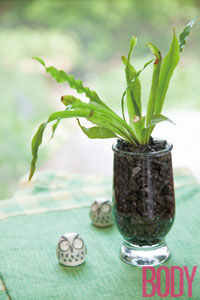 照料守則:山蘇容易積灰塵,要記得時常沖水或擦拭,以免山蘇的呼吸孔被塞住,淨化空氣的效果會變差。而栽種上可用麥飯石取代土,並用玻璃瓶當容器,就能時常注意是否需要澆水。