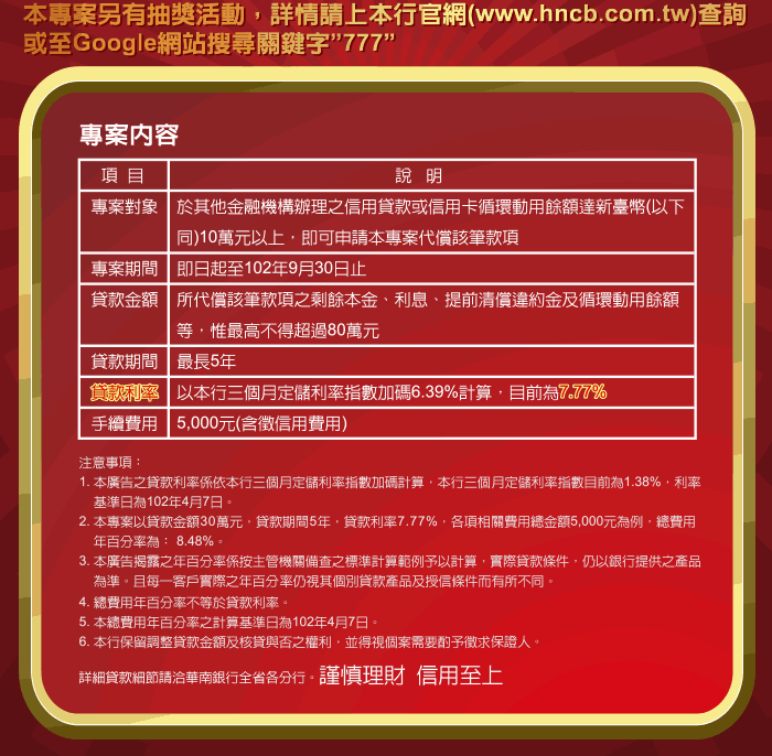 華南銀行限時限量信貸代償專案,再抽手機!