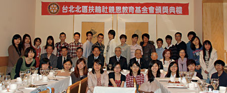 「扶輪親恩獎學金」於三月十五日,在臺北國賓大飯店舉行致贈儀式。來自臺北市的各校、三十位大學同學,在用過晚餐後,領取了其奮鬥有成的獎學金。 扶輪親恩獎學金將一學年獎學金分兩次致贈。這次是本學年的第二次,也是最後一次。上次是在去年十一月初。經過近半年時間,學生們在學習上,不管學業、人際、生活,均有長足進步。