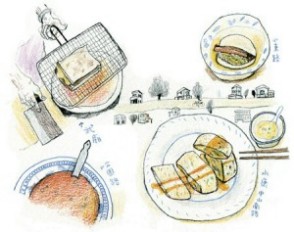 我點了一盤蛋餅和味噌湯,老闆和老闆娘隨即在一旁開灶,不久就為我端上桌。蛋餅與我在臺北常吃的軟皮不同,它的外裹是用炸的,有獨特的酥脆感,�頭的蛋更是味道稠密得化不開。味噌湯也是一絕,海苔絲和油條塊錯綜浮在湯上,味噌的濃郁印象在每一次入口不斷地層層疊高,令人欲罷不能。這樣一餐美味的早餐竟然只要價新臺幣二十五元,讓我吃得又心虛又感激,夫復何求啊。