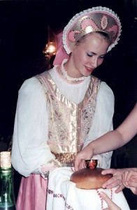 這個城市仍保留了許多俄羅斯的傳統。當地市政官員為了迎接臺灣來的文化親善大使,在歡迎會中安排一位美麗的小姐,身著傳統服裝,手捧一個大麵包與一小杯鹽,送到客人面前。這時我們必須撕下一塊麵包,沾鹽送入口中,接受對方的好意。原來在古老的俄國,麵包和鹽是王公貴族享用的珍品。延續至今的意義是,把最珍貴的東西,與最好的朋友分享。多美的傳統,多美的待客之道。