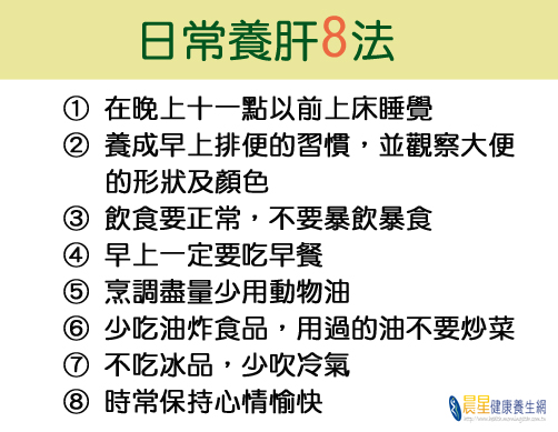 如果你已經睡足了八小時仍覺得疲累、有黑眼圈或眼睛乾澀、皮膚易過敏、整天疲勞且氣色差,或是有的女性會不停長痘痘,這些都是肝疲勞的表現。